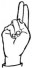 На ћирилици написано КРСТИМИР ВУЛИЋЕВИЋ састоји се из 17 слова [?]. Исписано ћириличном једноручном азбуком за глувонеме: